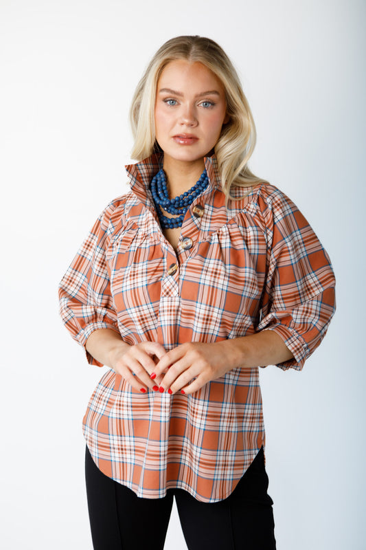 Avie Top-Ripe for Fall Collection - Salmon Plaid