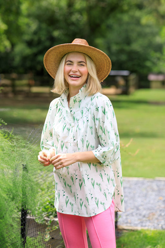 Avie Top-Botanical Library Collection - White and Green Floral