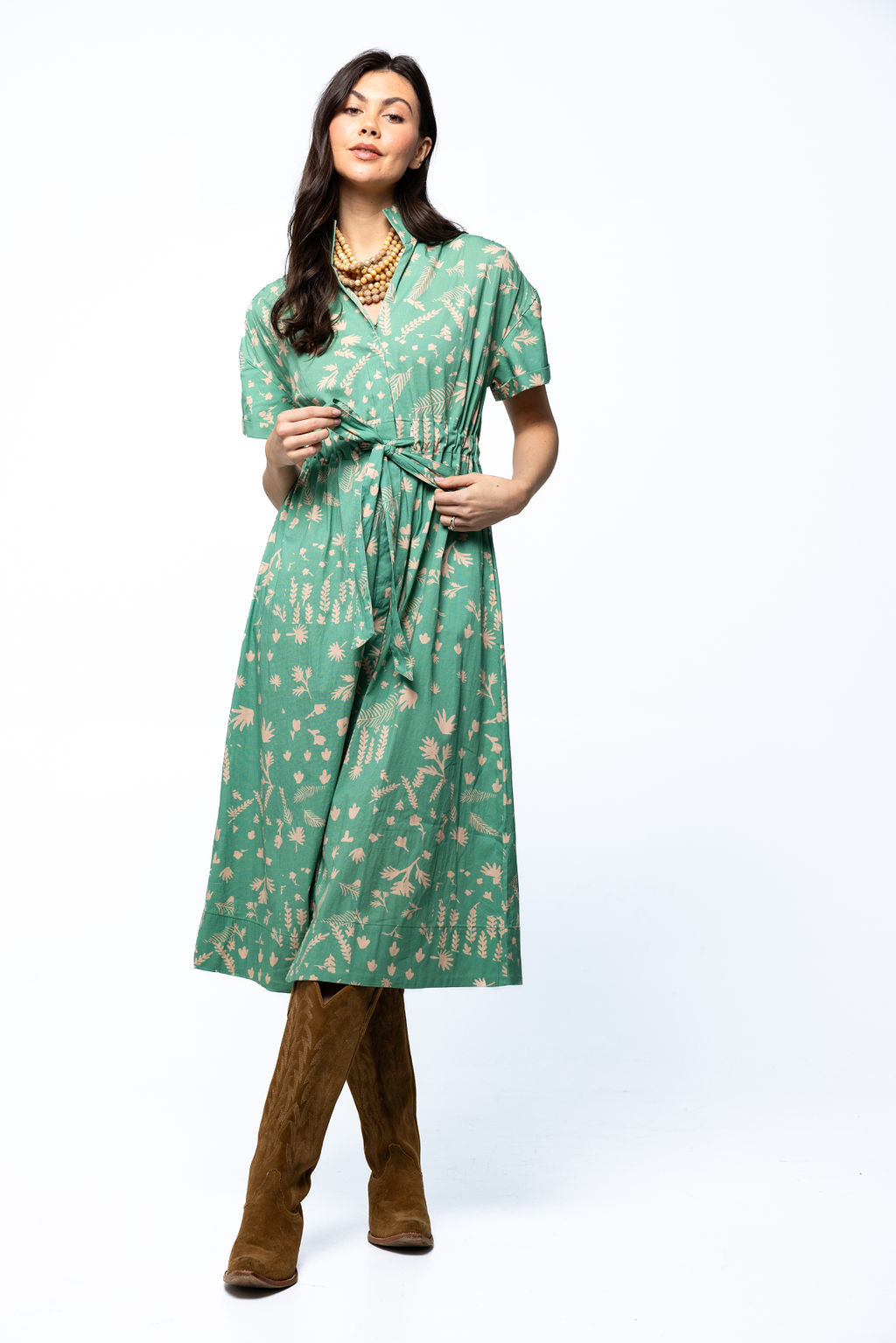 Meet Bria, our newest lady in the HS line and a bestseller for stores across the country! The Bria dress was designed with feminine ease in mind. Classic style elements like a stand collar, wide self belt, covered placket and elongated cap sleeves with a pleated shoulder. This modern take on a classic dress with an empire waist will not disappoint and will be your go-to for all events!