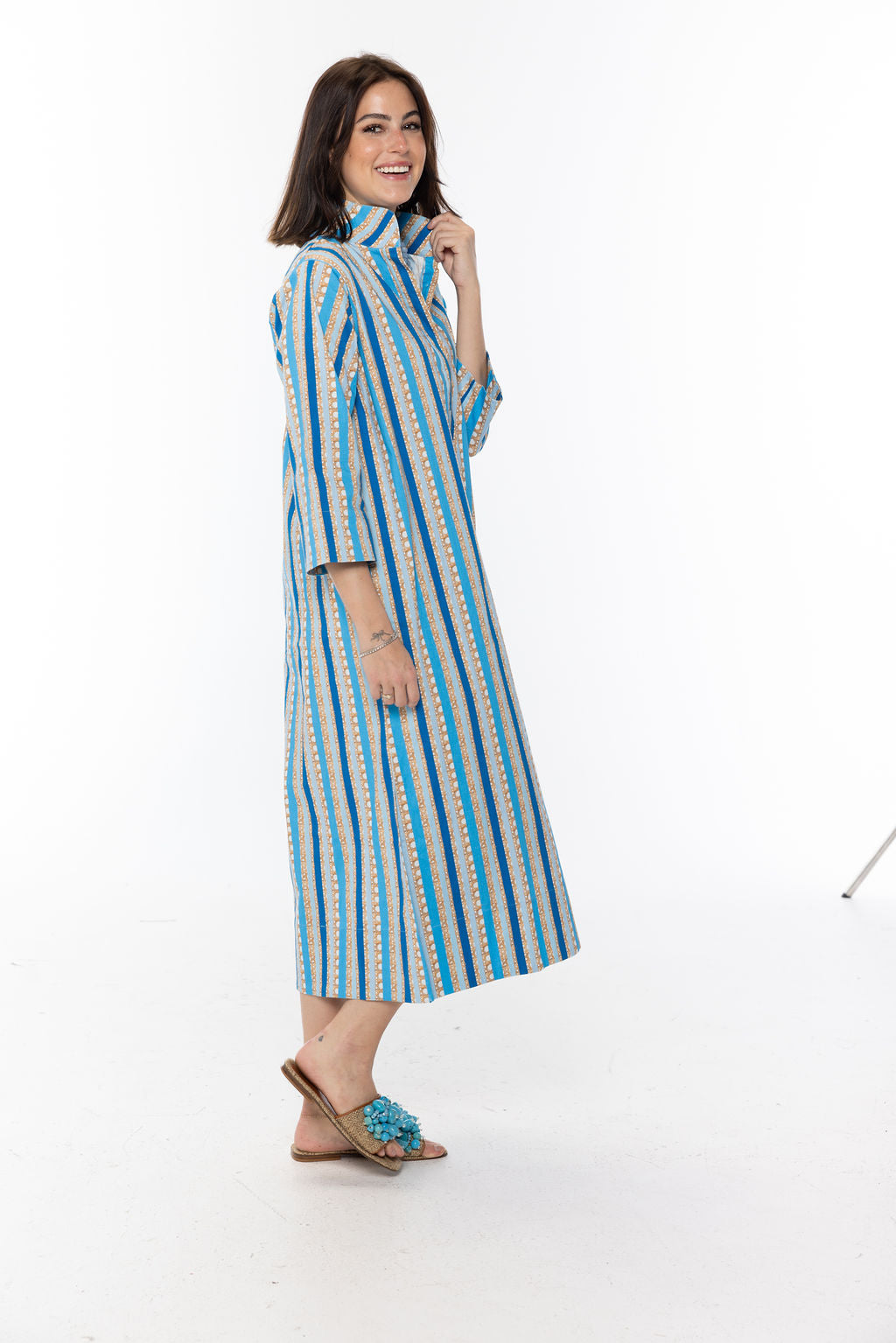 This "nod to mod" stand collar dress is the perfect "throw and go" piece! The Montego Mood Collection with prints by Betsy Douglas will not disappoint. Extra high stand collar, covered placket, with 3/4 sleeve length sleeves. The Grace is Holly's favorite maxi dress and also our bestseller!