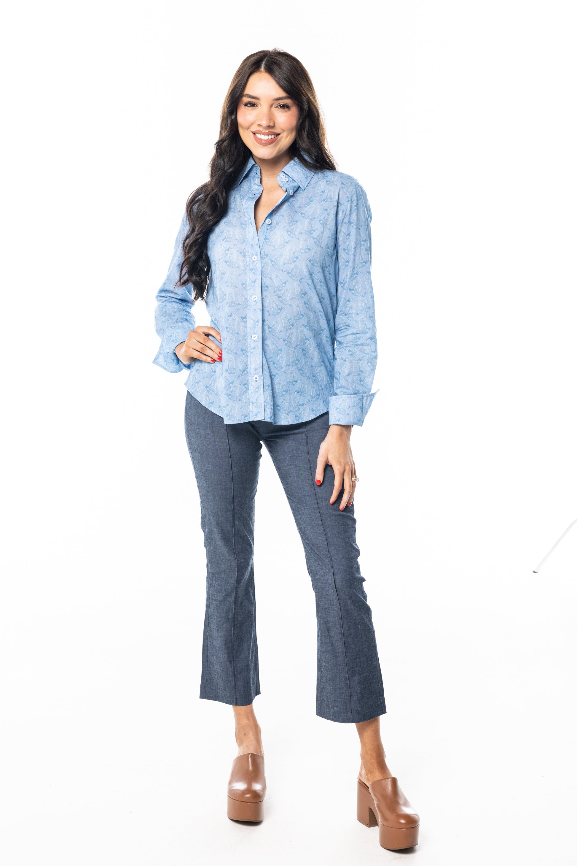 Meet the Liz Top! With a classic silhouette cut from our stretch denim fabric, the Liz is the Fall essential you won't want to be without.